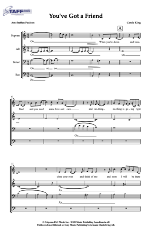Nu finns You've Got A Friend även för blandad kör med komp. Både i tre- och fyrstämmig, ganska enkel sättning. Kolla på: bit.ly/ygafmixkomp ... MerMindre